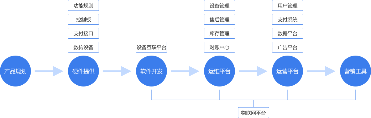 通过硬件设备和软件的连接,对智能硬件的产品进行数据记录。如:智能手表、智能空气质量检测仪等,可以记录数据,状态查看等。一站式解决方案
